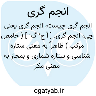 انجم گری. [ اَ ج ُ گ َ ] ( حامص مرکب ) ظاهراً به معنی ستاره شناسی و ستاره شماری و بمجاز به معنی مکر و فریب و حیله و تزویر و دروغزنی است: