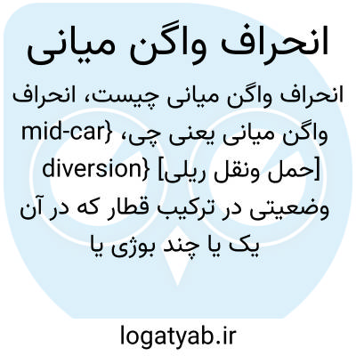 {mid-car diversion} [حمل ونقل ریلی] وضعیتی در ترکیب قطار که در آن یک یا چند بوژی یا واگن در راستایی متفاوت با دیگر بوژی ها یا واگن ها قرار می گیرند