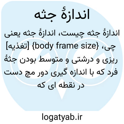 {body frame size} [تغذیه] ریزی و درشتی و متوسط بودن جثۀ فرد که با اندازه گیری دور مچ دست در نقطه ای که کمترین محیط را دارد تعیین می شود