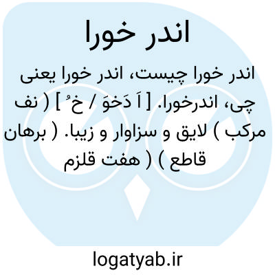 اندرخورا. [ اَ دَخوَ / خ ُ ] ( نف مرکب ) لایق و سزاوار و زیبا. ( برهان قاطع ) ( هفت قلزم ). لایق و زیبا. ( مؤید الفضلاء ). درخور و سزاوار. ( فرهنگ رشیدی ). سزاوار و لایق و شایسته و مناسب. ( ناظم الاطباء ).