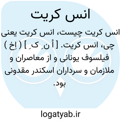 انس کریت. [ اُ ن ِ ک ِ ] ( اِخ ) فیلسوف یونانی و از معاصران و ملازمان و سرداران اسکندر مقدونی بود. رجوع به فهرست اعلام ایران باستان پیرنیا شود.
