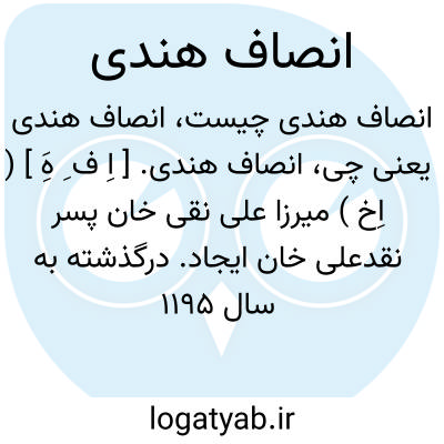 انصاف هندی. [ اِ ف ِ هَِ ] ( اِخ ) میرزا علی نقی خان پسر نقدعلی خان ایجاد. درگذشته به سال 1195 هَ. ق. شاعر بود و نخست صبا تخلص می کرد پس انصاف اختیار کرد. از اوست: