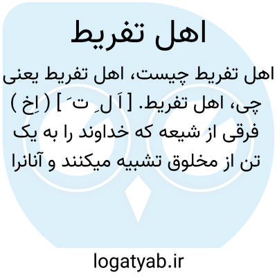 اهل تفریط. [ اَ ل ِ ت َ ] ( اِخ ) فرقی از شیعه که خداوند را به یک تن از مخلوق تشبیه میکنند و آنانرا مشبهه و اهل تقصیر نیز گویند. ( خاندان نوبختی ص 250 ).