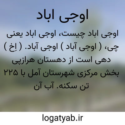 ( اوجی آباد ) اوجی آباد. ( اِخ ) دهی است از دهستان هرازپی بخش مرکزی شهرستان آمل با 225 تن سکنه. آب آن از رودخانه ٔهراز و چشمه علی و محصولش برنج، غلات، پنبه، کنف، حبوبات و شغل اهالی زراعت است. راه مالرو دارد. بنای تکیه آن قدیمی است. ( از فرهنگ جغرافیائی ایران ج 3 ).