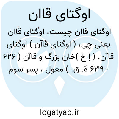 ( اوگتای قاآن ) اوگتای قاآن. ( اِ خ )خان بزرگ و قاآن ( 626 - 639 هَ. ق. ) مغول، پسر سوم و جانشین چنگیزخان. وی در زمان پدر در بسیاری از مهاجمات مغول شرکت داشت و علاوه بر سرداری قسمتی از سپاه مغول غالباً تمشیت امور و تدبیر مصالح مملکت چنگیزخان بعهده او بود و به همین جهت چنگیزخان او را با آنکه مهتر فرزندانش نبود جهت قاآنی و جانشینی برگزید. وی دو سال بعد از وفات پدر بحکم مجلس مشاورت عالی ( قوریلتای ) بمقام قاآنی انتخاب شد و چند سال بعد لشکر به ختای کشید و آنجا را مسخرنمود ( 629 هَ. ق ) پس از آن گیوک خان پسر خود را با جمعی از برادرزادگان بفتح بلاد روس و چرکس و بلغار فرستاد ( 633 هَ. ق. ). پسرش گیوک خان جانشین او گشت. ( دایرة المعارف فارسی ).
