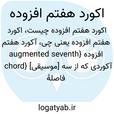 {augmented seventh chord} [موسیقی] آکوردی که از سه فاصلۀ سوم بزرگ و پنجم افزوده و هفتم بزرگ به ترتیب از نت پایه تشکیل می شود متـ. آکورد هفتم افزوده بزرگ augmented-major seventh chord