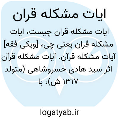 [ویکی فقه] آیات مشکله قرآن. آیات مشکله قرآن اثر سید هادی خسروشاهی (متولد ۱۳۱۷ ش)، با همکاری آیت اللّه جعفر سبحانی از محققین معاصر است.