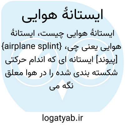 {airplane splint} [پیوند] ایستانه ای که اندام حرکتی شکسته بندی شده را در هوا معلق نگه می دارد تا ضربه نخورد