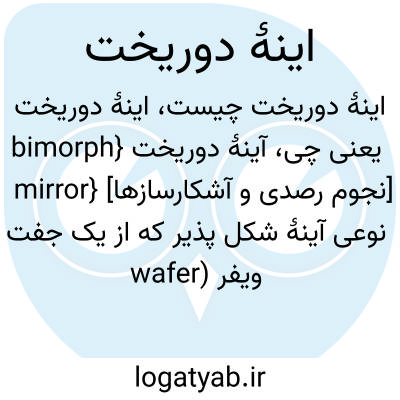 {bimorph mirror} [نجوم رصدی و آشکارسازها] نوعی آینۀ شکل پذیر که از یک جفت ویفر (wafer ) فشاربرقی تشکیل شده است و براثر تحریک های الکتریکی تغییر شکل می دهد