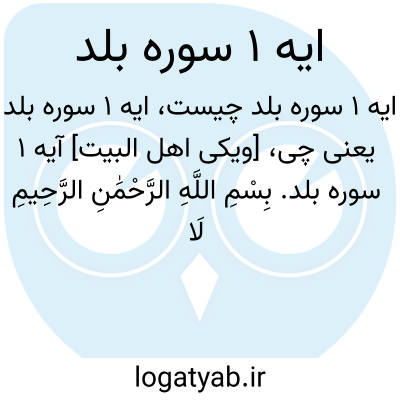 [ویکی اهل البیت] آیه 1 سوره بلد. بِسْمِ اللَّهِ الرَّحْمَٰنِ الرَّحِیمِ لَا أُقْسِمُ بِهَٰذَا الْبَلَدِ