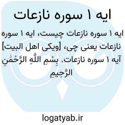 [ویکی اهل البیت] آیه 1 سوره نازعات. بِسْمِ اللَّهِ الرَّحْمَٰنِ الرَّحِیمِ وَالنَّازِعَاتِ غَرْقًا