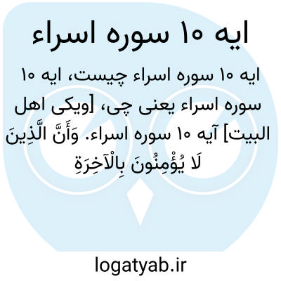 [ویکی اهل البیت] آیه 10 سوره اسراء. وَأَنَّ الَّذِینَ لَا یُؤْمِنُونَ بِالْآخِرَةِ أَعْتَدْنَا لَهُمْ عَذَابًا أَلِیمًا