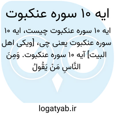 [ویکی اهل البیت] آیه 10 سوره عنکبوت. وَمِنَ النَّاسِ مَنْ یَقُولُ آمَنَّا بِاللَّهِ فَإِذَا أُوذِیَ فِی اللَّهِ جَعَلَ فِتْنَةَ النَّاسِ کَعَذَابِ اللَّهِ وَلَئِنْ جَاءَ نَصْرٌ مِنْ رَبِّکَ لَیَقُولُنَّ إِنَّا کُنَّا مَعَکُمْ ۚ أَوَلَیْسَ اللَّهُ بِأَعْلَمَ بِمَا فِی صُدُورِ الْعَالَمِینَ