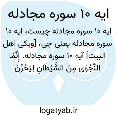 [ویکی اهل البیت] آیه 10 سوره مجادله. إِنَّمَا النَّجْوَیٰ مِنَ الشَّیْطَانِ لِیَحْزُنَ الَّذِینَ آمَنُوا وَلَیْسَ بِضَارِّهِمْ شَیْئًا إِلَّا بِإِذْنِ اللَّهِ ۚ وَعَلَی اللَّهِ فَلْیَتَوَکَّلِ الْمُؤْمِنُونَ