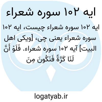 [ویکی اهل البیت] آیه 102 سوره شعراء. فَلَوْ أَنَّ لَنَا کَرَّةً فَنَکُونَ مِنَ الْمُؤْمِنِینَ ای کاش که بار دیگر (به دنیا) باز می گشتیم تا (به خدای یگانه) ایمان می آوردیم. پس ای کاش برای ما بازگشتی بود تا از مؤمنان می شدیم. و ای کاش که بازگشتی برایِ ما بود و از مؤمنان می شدیم. کاش بار دیگر به دنیا باز گردیم تا از مؤمنان گردیم. ای کاش بار دیگر (به دنیا) بازگردیم و از مؤمنان باشیم!» Then if we only had a return and could be of the believers... " "'Now if we only had a chance of return we shall truly be of those who believe!'"