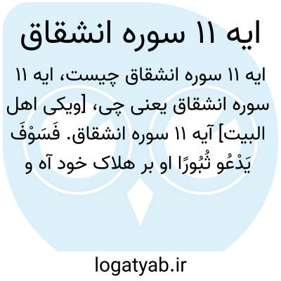 [ویکی اهل البیت] آیه 11 سوره انشقاق. فَسَوْفَ یَدْعُو ثُبُورًا او بر هلاک خود آه و فریاد حسرت بسیار کند. به زودی با فریادی حسرت بار، هلاکت و نابودی خود را خواهد، زودا که بگوید: وای بر من که هلاک شدم. بزودی فریاد می زند وای بر من که هلاک شدم! He will cry out for destruction Soon will he cry for perdition,