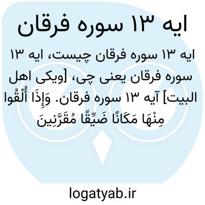 [ویکی اهل البیت] آیه 13 سوره فرقان. وَإِذَا أُلْقُوا مِنْهَا مَکَانًا ضَیِّقًا مُقَرَّنِینَ دَعَوْا هُنَالِکَ ثُبُورًا