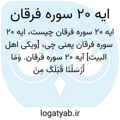 [ویکی اهل البیت] آیه 20 سوره فرقان. وَمَا أَرْسَلْنَا قَبْلَکَ مِنَ الْمُرْسَلِینَ إِلَّا إِنَّهُمْ لَیَأْکُلُونَ الطَّعَامَ وَیَمْشُونَ فِی الْأَسْوَاقِ ۗ وَجَعَلْنَا بَعْضَکُمْ لِبَعْضٍ فِتْنَةً أَتَصْبِرُونَ ۗ وَکَانَ رَبُّکَ بَصِیرًا
