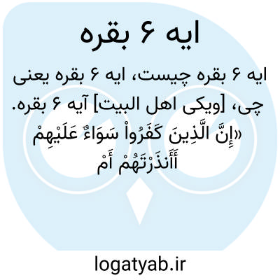 [ویکی اهل البیت] آِیه 6 بقره. «إِنَّ الَّذِینَ کَفَرُواْ سَوَاءٌ عَلَیْهِمْ أَأَنذَرْتَهُمْ أَمْ لَمْ تُنذِرْهُمْ لاَیُؤْمِنُونَ».
