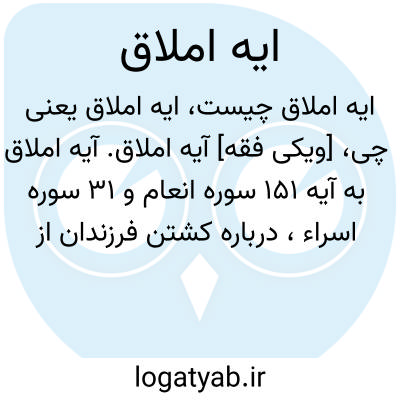 [ویکی اهل البیت] آیه املاق. به آیه 151 سوره انعام و 31 سوره اسراء که درباره کشتن فرزندان از ترس فقر است؛ آیه املاق گفته می شود. املاق از ماده مَلق (بر وزن فَلس) - به معنای فقر - است. اصل آن به معنی نرمی است و اطلاق آن بر فقر از این جهت است که فقر نیز انسان را نرم و ذلیل می کند. املاق نیز به معنای فقر و بی چیزی است. واژه املاق در دو آیه قرآن آمده است و به همین جهت به آنها آیه املاق گفته می شود: