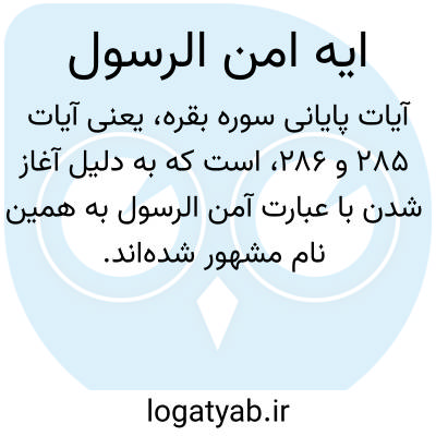 [ویکی اهل البیت] آیه آمن الرسول. آیه 285 و 286 سوره بقره/ 2 که با عبارت «ءَامنَ الرَّسول» آغاز می شود به این نام شهرت یافته است.