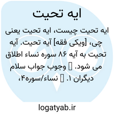 [ویکی فقه] آیه تحیت. آیه تحیت به آیه ۸۶ سوره نساء اطلاق می شود.