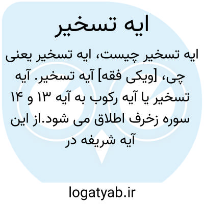 [ویکی فقه] آیه تسخیر. آیه تسخیر یا آیه رکوب به آیه ۱۳ و ۱۴ سوره زخرف اطلاق می شود.از این آیه شریفه در باب حج به مناسبت سخن رفته است.