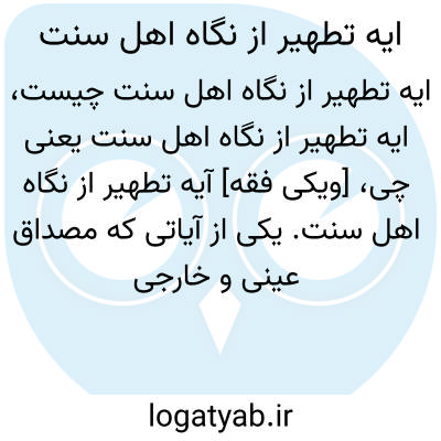 [ویکی فقه] آیه تطهیر از نگاه اهل سنت. یکی از آیاتی که مصداق عینی و خارجی آن فقط به اهل بیت پیامبر (صلی الله علیه و آله وسلّم)، قابل تطبیق است، و عصمت، امامت و در نتیجه مرجعیت دینی آنها را ثابت می کند، آیه تطهیر است که خدا می فرماید: «انما یرید الله لیذهب عنکم الرجس اهل البیت ویطهرکم تطهیرا؛
