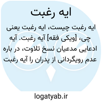[ویکی فقه] آیه رغبت. آیه ادعایی مدعیان نسخ تلاوت، در باره عدم رویگردانی از پدران را آیه رغبت گویند.