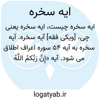 [ویکی شیعه] آیه سخره. آیه سُخرَه به آیات ۵۴ تا ۵۶ سوره اعراف اشاره دارد که همه چیز را مُسخّر خدا می داند. در روایات برای خواندن این آیه خواصی همچون آرامش قلبی، دفع وسوسه و حفظ از ساحران و شیاطین ذکر شده است. خواندن آیه سخره بعد از نماز صبح، هنگام رسیدن حاجی به عرفات و هنگام ورود به مسجد، مستحب است.