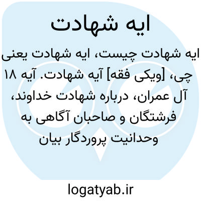 [ویکی اهل البیت] آیه شهادت. آیه 18 سوره آل عمران/3 به «آیه شهادت» شهرت یافته است و چون با کلمه «شهداللّه» آغاز شده، به آن «آیه شهداللّه» نیز می گویند: