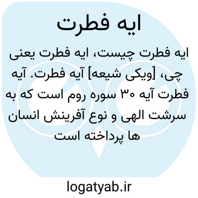 [ویکی شیعه] آیه فطرت. آیه فطرت آیه ۳۰ سوره روم است که به سرشت الهی و نوع آفرینش انسان ها پرداخته است و گرایش انسان به خدا و دین را فطری و برخاسته از درون آن می داند.