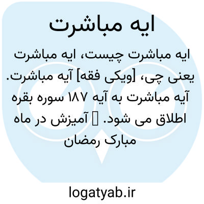 [ویکی فقه] آیه مباشرت. آیه مباشرت به آیه ۱۸۷ سوره بقره اطلاق می شود.