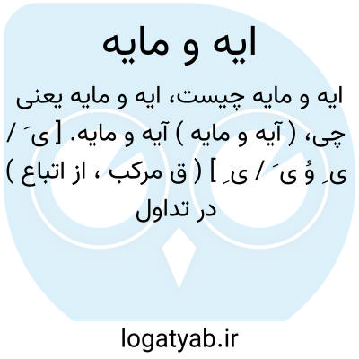( آیه و مایه ) آیه و مایه. [ ی َ / ی ِ وُ ی َ / ی ِ ] ( ق مرکب، از اتباع ) در تداول عامه، همگی. بالجمله. جمعاً. این و بس ( بطور تحقیر ): این روغن آیه و مایه دو سیر بود. آیه و مایه یک تومان دارم.