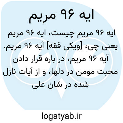 [ویکی فقه] آیه ۹۶ مریم. آیه ۹۶ مریم، در باره قرار دادن محبت مومن در دلها، و از آیات نازل شده در شان علی علیه السّلام است.