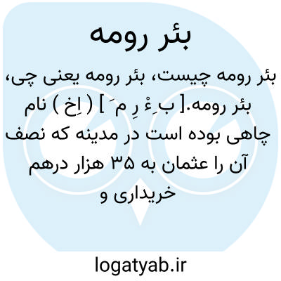 بئر رومه.[ ب ِءْ رِ م َ ] ( اِخ ) نام چاهی بوده است در مدینه که نصف آن را عثمان به 35 هزار درهم خریداری و وقف برمسلمانان نمود و صاحب آن دوباره آن را از عثمان خریده و تمام آن را یکجا وقف کرد. ( از معجم البلدان ).