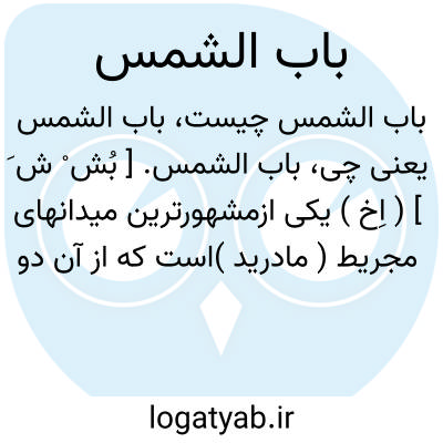 باب الشمس. [ بُش ْ ش َ ] ( اِخ ) یکی ازمشهورترین میدانهای مجریط ( مادرید )است که از آن دو خیابان امتداد می یابد یکی موسوم به شارع قلعه و دیگری جیرونیمو می باشد. ( از الحلل السندسیه ج 1 ص 348 ).