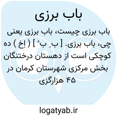 باب برزی. [ ب ِ ب ُ ] ( اِخ ) ده کوچکی است از دهستان درختنگان بخش مرکزی شهرستان کرمان در 45 هزارگزی شمال خاوری کرمان و 8 هزارگزی شمال راه مالرو شهداد به کرمان. سکنه آن 14 تن است. ( فرهنگ جغرافیائی ایران ج 8 ).