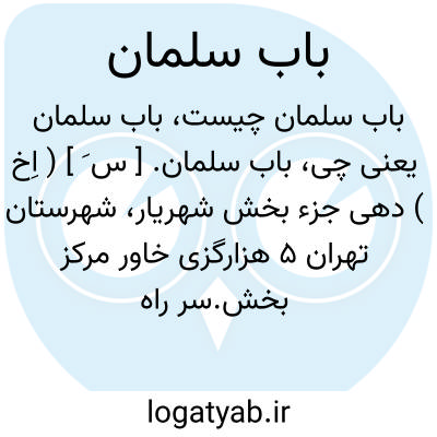 باب سلمان. [ س َ ] ( اِخ ) دهی جزء بخش شهریار، شهرستان تهران 5 هزارگزی خاور مرکز بخش.سر راه ماشین رو فرعی تهران به علیشاه عوض، در جلگه معتدل. سکنه آن 447 تن، شیعه و آب آن از رودخانه کرج و محصول آنجا غلات، صیفی، انگور و چغندر قند و شغل اهالی زراعت است. راه ماشین رو دارد. مزرعه قشلاق شاه علی جزء این ده است. ( فرهنگ جغرافیائی ایران ج 1 ).