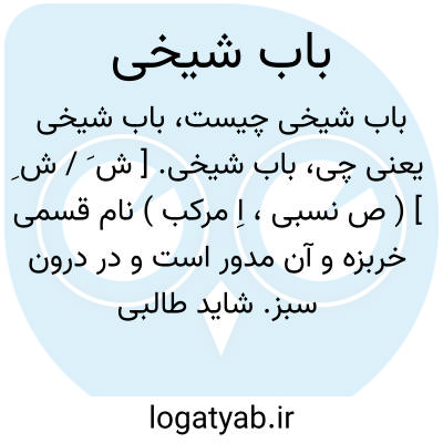 باب شیخی. [ ش َ / ش ِ ] ( ص نسبی، اِ مرکب ) نام قسمی خربزه و آن مدور است و در درون سبز. شاید طالبی امروزه باشد.