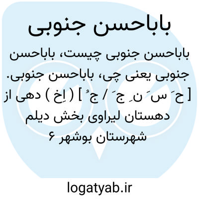 باباحسن جنوبی. [ ح َ س َ ن ِ ج َ / ج ُ ] ( اِخ ) دهی از دهستان لیراوی بخش دیلم شهرستان بوشهر 6 هزارگزی خاور دیلم و 6 هزارگزی راه فرعی دیلم به گچساران. جلگه گرمسیر مرطوب و مالاریائی. سکنه ٔآن 200 تن و آب آن از چاه و محصول آن غلات ( دیمی ) و شغل اهالی زراعت است. ( فرهنگ جغرافیائی ایران ج 7 ).