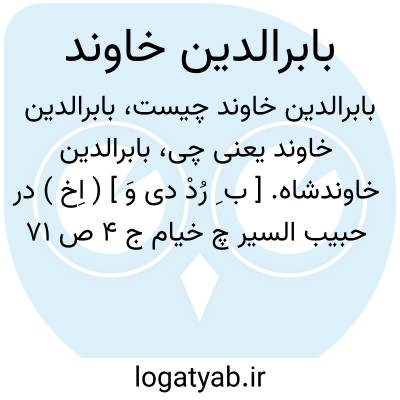 بابرالدین خاوندشاه. [ ب ِ رُدْ دی وَ ] ( اِخ ) در حبیب السیر چ خیام ج 4 ص 71 این نام به عنوان جد مؤلف حبیب السیر مذکور است ولی در چاپ قدیم تهران جزو ثالث از مجلد سیم ص 229 «امیر برهان الدین خاوندشاه » است و همین صحیح است. رجوع به برهان الدین و رجوع به مقدمه حبیب السیر چ خیام ج 1 ص 5 شود.