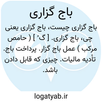 باج گزاری. [ گ ُ ] ( حامص مرکب ) عمل باج گزار. پرداخت باج. تأدیه مالیات. چیزی که قابل دادن باشد.