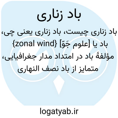 {zonal wind} [علوم جَوّ] باد یا مؤلفۀ باد در امتداد مدار جغرافیایی، متمایز از باد نصف النهاری