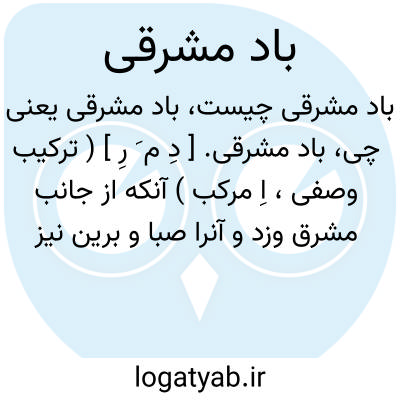 باد مشرقی. [ دِ م َ رِ ] ( ترکیب وصفی، اِ مرکب ) آنکه از جانب مشرق وزد و آنرا صبا و برین نیز گویند. خُضاخِض. ( منتهی الارب ). قَبول. رجوع به باد، باد صبا، و باد برین شود.