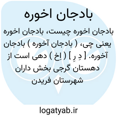 ( بادجان آخوره ) بادجان آخوره. [ دِ رِ ] ( اِخ ) دهی است از دهستان گرجی بخش داران شهرستان فریدن در 22هزارگزی باختر داران و دوازده هزارگزی راه ازنا باصفهان. سرزمینی است جلگه و سردسیر با 1117 تن سکنه. آبش از قنات و رودخانه و چشمه است.محصولش غلات، حبوبات، عسل و شغل مردمش زراعت و گله داری و صنایع دستی زنانش قالی و جاجیم بافی میباشد. راهش ماشین رو است. ( از فرهنگ جغرافیائی ایران ج 10 ).