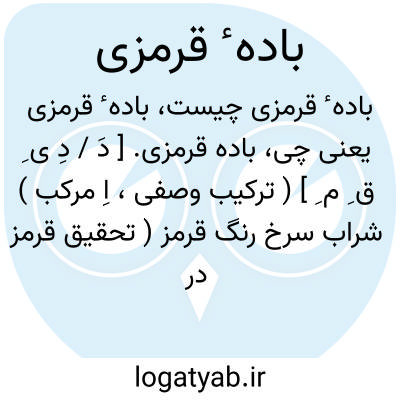 باده قرمزی. [ دَ / دِ ی ِ ق ِ م ِ ] ( ترکیب وصفی، اِ مرکب ) شراب سرخ رنگ قرمز ( تحقیق قرمز در اصطلاح قرمز در مبحث قاف بیاید ). ملاطغرا در توحید گوید:
