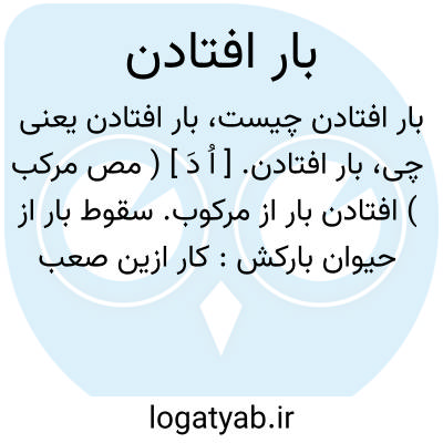 بار افتادن. [ اُ دَ ] ( مص مرکب ) افتادن بار از مرکوب. سقوط بار از حیوان بارکش: