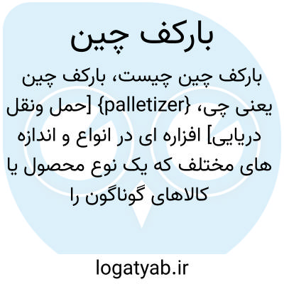 {palletizer} [حمل ونقل دریایی] افزاره ای در انواع و اندازه های مختلف که یک نوع محصول یا کالاهای گوناگون را در الگوهای معینی بر روی بارکف می چیند و آنها را به یک واحد بار تبدیل می کند
