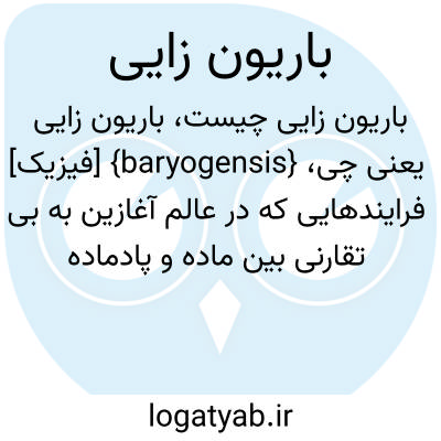 {baryogensis} [فیزیک] فرایندهایی که در عالم آغازین به بی تقارنی بین ماده و پادماده انجامید و سبب چیرگی ماده شد